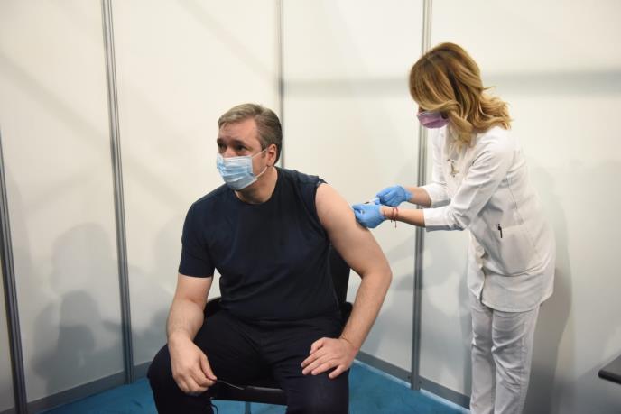 Predsednik Srbije je prvu dozu kineske vakcine "Sinofarm" primio 6. aprila u Rudnoj glavi kod Majdanpeka, a drugu dozu 27. aprila u Pukovcu kod Doljevca.