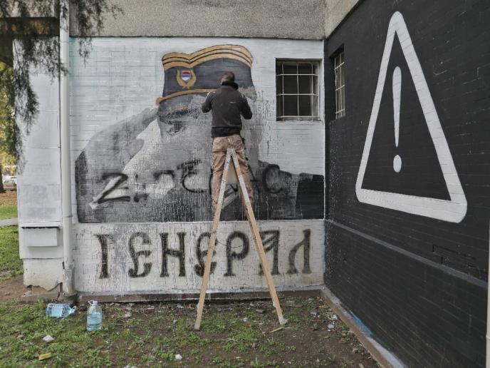 UNIŠTEN JOŠ JEDAN MURAL RATKU MLADIĆU: Ižvrljan lik, PONOVO u toku njegovo čišćenje (FOTO) Foto: Stefan Stojanović MONDO