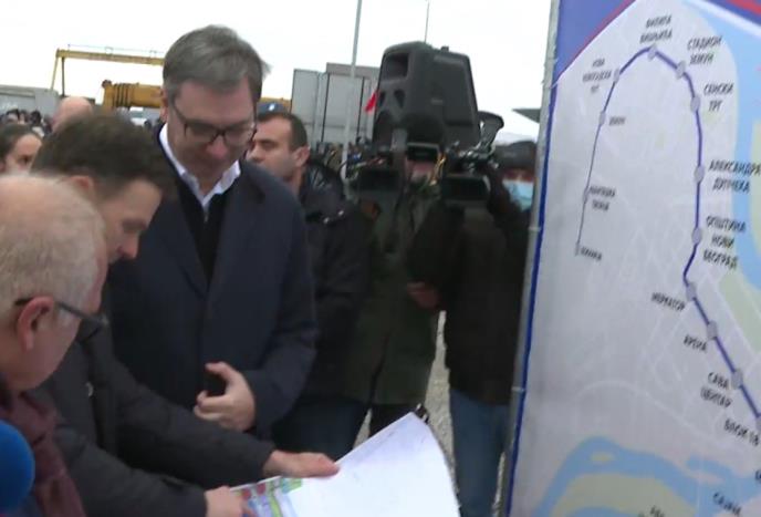 Predsednik je mesto izgradnje obišao s ministrom finansija Sinišom Malim i zamenikom gradonačelnika Beograda Goranom Vesićem koji su mu detaljno objasnili koliko će tačno stanica imati koja linija metroa i kuda će prolaziti.