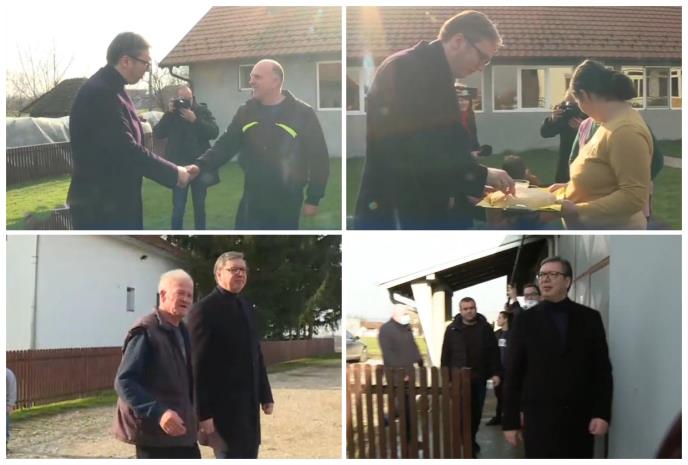 Predsednik Vučić razovara trenutno sa porodicom iz mesta Korenite, kako bi uvideo njihove probleme.