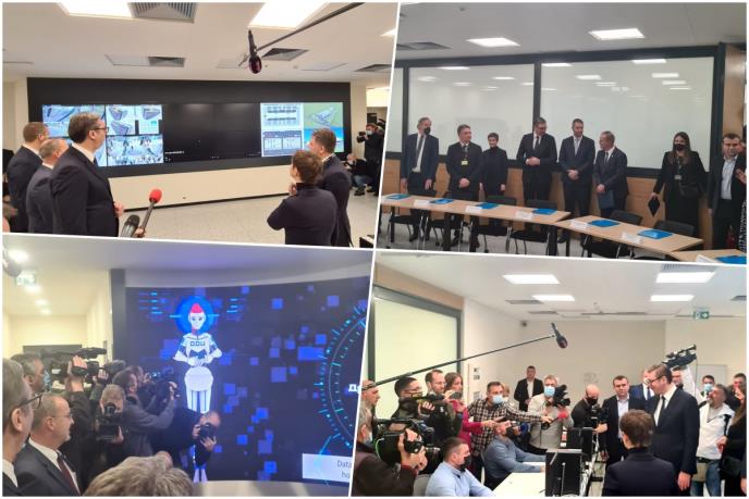 Predsednik Srbije Aleksandar Vučić prisustvovao je danas puštanju u rad prve Nacionalne platforme za veštačku inteligenciju u Srbiji, u Državnom data centru u Kragujevcu.