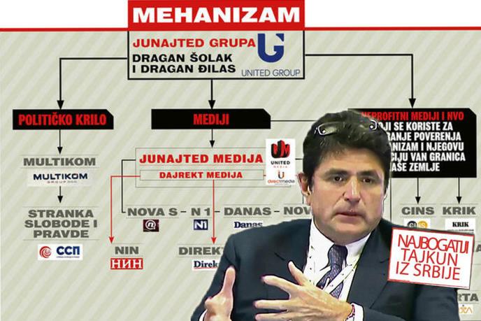 Mehanizam za zaštitu interesa Dragana Šolaka formiran je radi napada i vođenja prljavih kampanja protiv svih onih koji se nađu na putu interesima vlasnika Junajted grupe. Mehanizam čine mediji u direktnom vlasništvu Junajted medije, ali i politička stranka Dragana Đilasa, kao i mediji koje ova grupa kontroliše preko prodaje reklamnih prostora - portal Direktno.rs, te nedeljnici Nin i Vreme. Posebnu ulogu u mehanizmu imaju tzv. istraživački mediji i nevladine organizacije, koji imaju ulogu rezervnih kreatora sadržaja kojima se kreiraju afere i kriminalizuju unapred određene mete.