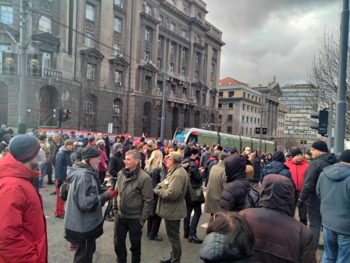 Mala grupa demonstranata okupila se oko 14 sati, a potom blokirala raskrsnicu Nemanjine i Kneza Miloša.