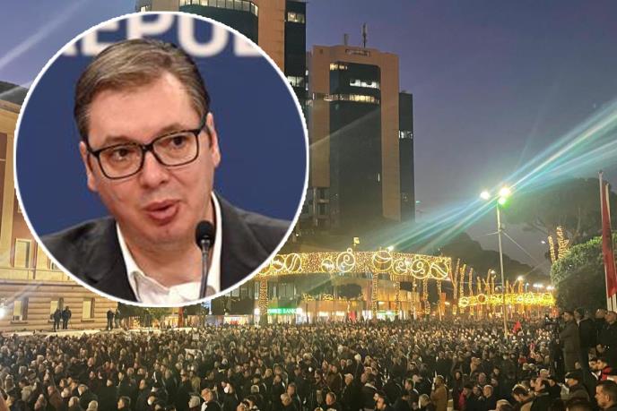 Albanski ekstremisti, uz obilatu pomoć političara sa Kosova, okupili su se u centru Tirane kako bi protestovali protiv predsednika Srbije Aleksandra Vučića, koji boravi u tom gradu u okviru inicijative "Otvoreni Balkan". Oni su montirali i binu za demonstrante u centru Tirane.