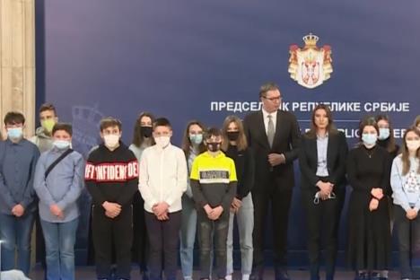 BEOGRAD - Predsednik Srbije Aleksandar Vučić ugostio je danas, na Badnji dan, decu srpske nacionalnosti iz Hrvatske, koja borave u poseti Beogradu, povodom božićnih praznika.