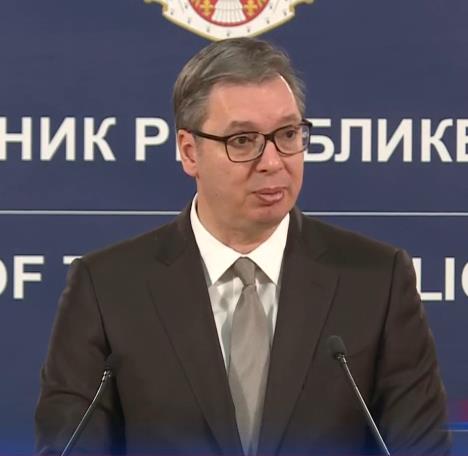 BEOGRAD - Predsednik Srbije Aleksandar Vučić obraća se javnosti iz Predsedništva Srbije.