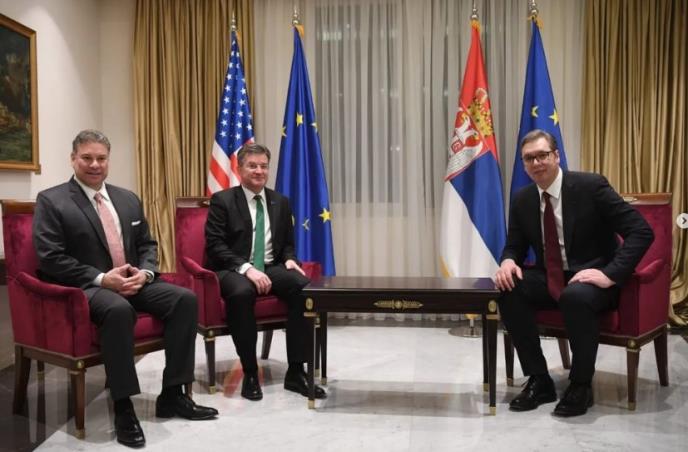 Predsednik Srbije Aleksandar Vučić izjavio je da je večeras u Beogradu razgovarao sa zvaničnicima Evropske unije (EU) i SAD zaduženim za Zapadni Balkan o ključnim temama značajnim za održivu budućnost i stabilnost regiona.