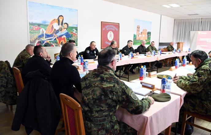 BEOGRAD - Po naređenju vrhovnog komandanta VS i predsednika Republike Srbije Aleksandra Vučića, ministar unutrašnjih poslova Aleksandar Vulin i ministar odbrane Nebojša Stefanović održali su danas u kasarni „Toplički ustanak“ u Kuršumliji sastanak sa rukovodiocima Ministarstva unutrašnjih poslova i Ministarstva odbrane i Vojske Srbije, na kome je sagledano stanje bezbednosti na administrativnoj liniji i u Kopnenoj zoni bezbednosti.