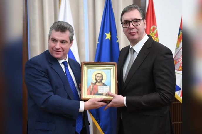 Predsednik Srbije Aleksandar Vučić primio je danas predsednika Komiteta za Međunarodne poslove Državne Dume Federalne Skupštine Ruske Federacije Leonida Sluckog, koji mu je tom prilikom uručio ikonu Gospoda Isusa Hrista, poklon patrijarha moskovskog i sve Rusije Kirila.
