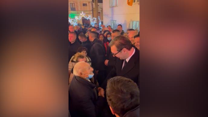 Vučić je oko 20.30 sati tigao u Zemun gde ga je dočekala reka ljudi, pozdravljali su ga aplauzom i mahali zastavama. Predsednik, vidno raspoložen i svakome je učtivo pružio ruku.