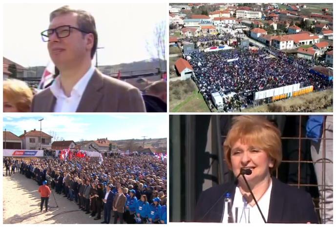- Tačno je da smo uradili više auto-puteva nego bilo koja druga vlast u istoriji Srbije. Tačno je i da smo uradili železničke pruge. Gradimo aerodrome, i sve to nije stvar obećanja. Čućete u ovoj kampanji od mnogih da će sve biti besplatno, da će teći med i mleko, ali država ne funkcioniše tako... Mogli smo da izmislimo šta hoćete, ali smo vrlo precizno rekli da će prosečna plata do kraja narednog mandata biti 1.000 evra... I dalje nije dobro, nije dovoljno, plate moraju da budu veće. Znam koliko se mučite, koliko poštujete rad i napredak, i moraćemo brže, snažnije i jače, kako bismo deci obezbedili sigurniju budućnost. Znam da ćemo zajedno raditi da to obezbedimo - rekao je Vučić.