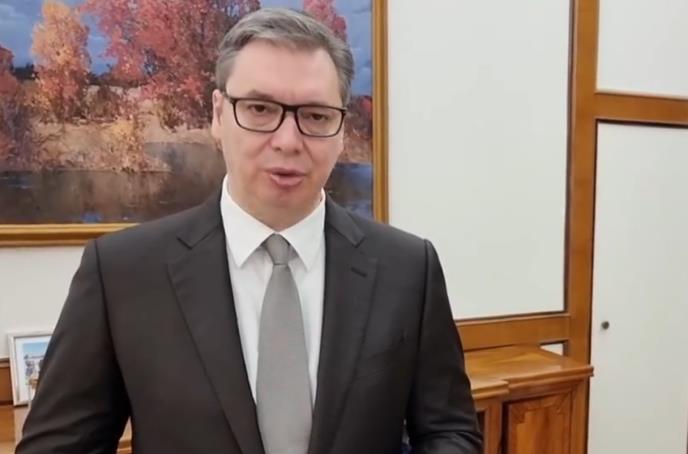 "Poštovani građani Srbije, Srbija nije ni u kakvom ratu niti će biti. Srbija će sačuvati mir i stabilnost i molim vas poštovani građani Srbije nemojte da nasedate na trikove, provokacije i besmislice koje govore da nemamo dovoljno nafte, naftnih derivata, da proveravate skloništa, da neće biti dovoljno hrane. Biće dovoljno hrane, benzina, svega što nam je potrebno u budućnosti jer odgovorna i ozbiljna srpska država za to se postarala. Dakle, nema potrebe da bilo gde žurite, da bilo šta tražite, ponašajte se normalno kao i svakog drugog dana jer čuvaćemo mir i gledaćemo kako da srspka ekonomija ubrzano napreduje. Hvala vam na poštovanju i veri u srpsku državu. Živela Srbije", rekao je predsednik u video poruci na Instagramu.
