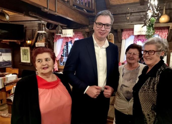 "Ove divne dame su zaslužne za prvi današnji osmeh.A sad, direktno u Bojnik, Lebane i Medveđu", oglasio se predsednik na Instagramu.