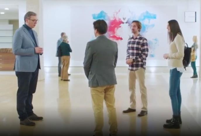 "Ja na ovoj slici vidim budućnost Srbije koja se bori za očuvanje mira i stabilnosti, za dostojanstven život svojih građana. Iako je situacija u svetu izuzetno teška i puna izazova za nas i dalje moramo da obezbedimo više radnih mesta, veće plate, bolju infrastrukturu. Vidim da pred sobom imamo još mnogo, mnogo posla. Mir i stabilnost", rekao je Vučić u novoj video poruci.