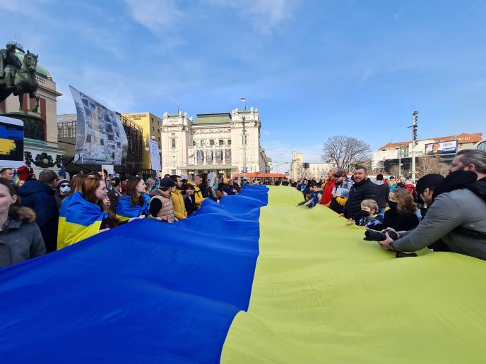 SKUP PODRŠKE UKRAJINI U CENTRU BEOGRADA: Više stotina građana okupilo se na Trgu Republike (VIDEO)