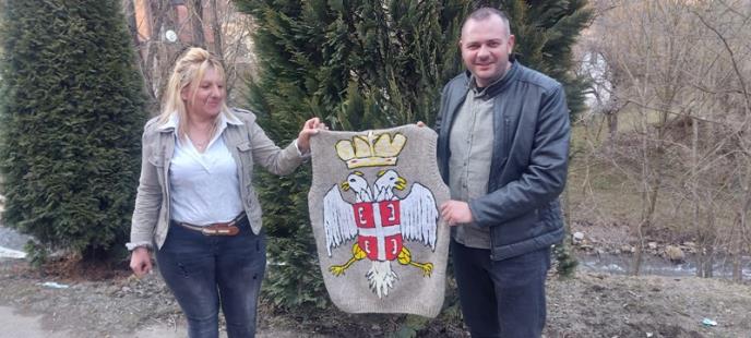 "Načinjen je od vune koju je ošišala sa svog stada i pravo je umetničko delo. Na leđima je raznim bojama rudica majstorskim rukama izvezen veliki nacionalni grb Srbije, dvoglavi orao sa krunom, verno kao na najotmenijim tapiserijama, a isti vaz, manje veličine, ukrašava levi rever ovog ručno izrađenog odevnog predmeta. ”, kazala je vredna planinka.