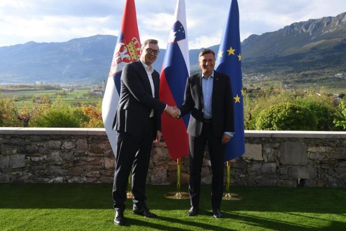 Predsednik Srbije Aleksandar Vučić boravi u Sloveniji, gde se sastaje sa predsednikom Borutom Pahorom, a pre sastanka u Vipavi se obratio javnosti.