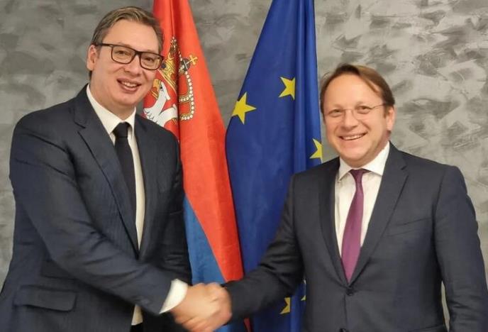 Predsednik Republike Srbije Aleksandar Vučić započeo je jednodnevnu posetu Kraljevini Belgiji sastankom sa komesarom Evropske unije za proširenje i susedsku politiku Oliverom Varheljijem.