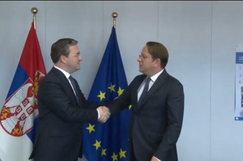 BEOGRAD - Ministar spoljnih poslova Nikola Selaković izjavio je danas u Briselu tokom sastanka sa sa komesarom EU za susedsku politiku i pregovore o proširenju Oliverom Varhejijem da je Beograd u potpunosti posvećen dijalogu s Prištinom, dok je, kako je naveo, posvećenost druge strane ovom procesu upitna, naročito imajući u vidu podnošenje zahteva Prištine za članstvo u Savetu Evrope, koji ne doprinosi procesu normalizacije odnosa.
