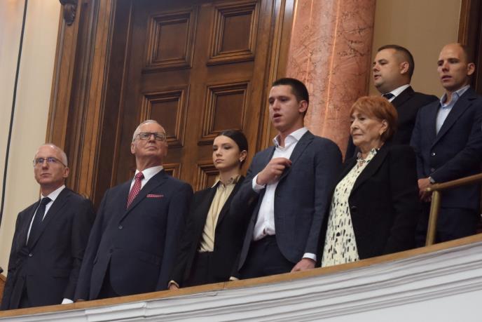 Kao podrška predsedniku u Skupštinu Srbije bili su roditelji Anđelko i Angelina, kao i ćerka Milica i sin Danilo.