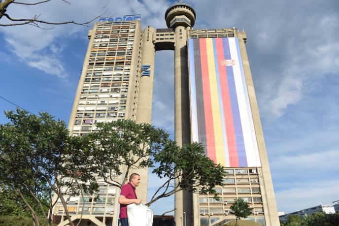 Dan uoči posete Beogradom se vijore zastave Srbije i Nemačke postavljene duž bulevara, a zastave obe zemlje su posebno istaknute na zgradi BIGZ-a.
