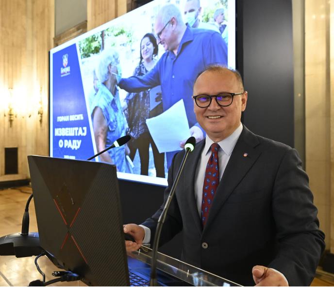 Zamenik gradonačelnika Goran Vesić podneo je danas izveštaj o radu za poslednjih osam godina i sedam meseci, koliko je obavljao posao u Gradu Beogradu.