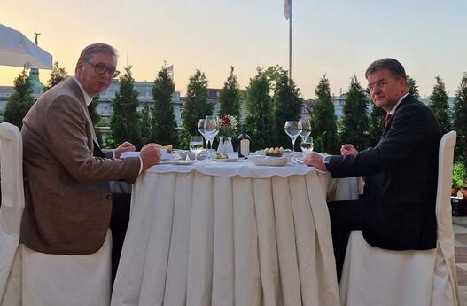 Predsednik Srbije Aleksandar Vučić objavio je fotografiju radne večere sa specijalnim izaslanikom EU za dijalog Beograda i Prištine Miroslavom Lajčakom.