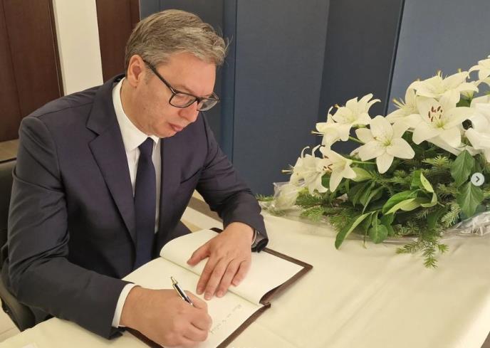 Predsednik Srbije Aleksandar Vučić upisao je u Knjigu žalosti povodom smrti bivšeg japanskog premijera Šinzoa Abea, koja je otvorena u ambasadi Japana u Beogradu.