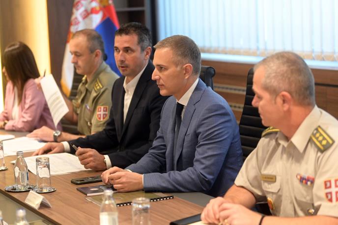 Uz ministra Stefanovića na sastanku su bili i državni sekretar Ministarstva odbrane Branko Živanović, načelnik Kabineta ministra odbrane pukovnik Stevan Kotarlić i načelnik Uprave za odbrambene tehnologije Sektora za materijalne resurse pukovnik Slavko Rakić.
