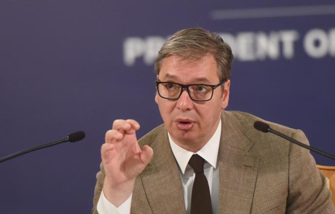 - Prištinski režim pokušava da iskoristi raspoloženje u svetu i da privuče žaljenje pričom o velikom i malom Putinu u kojoj bi Aljbin Kurti sebe predstavio kao Zelenskog. Doneli su odluku da nameću narodu na severu KiM stvari koje ne mogu da nameću - rekao je predsednik Srbije tokom obraćanja iz Predsedništva Srbije.