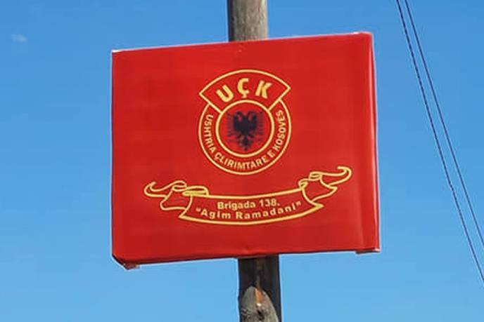 Na tabli ispod amblema OVK stoji potpis "Brigada 138. Agim Ramadani" koja nosi ime po jednom od vođa albanskih terorista.