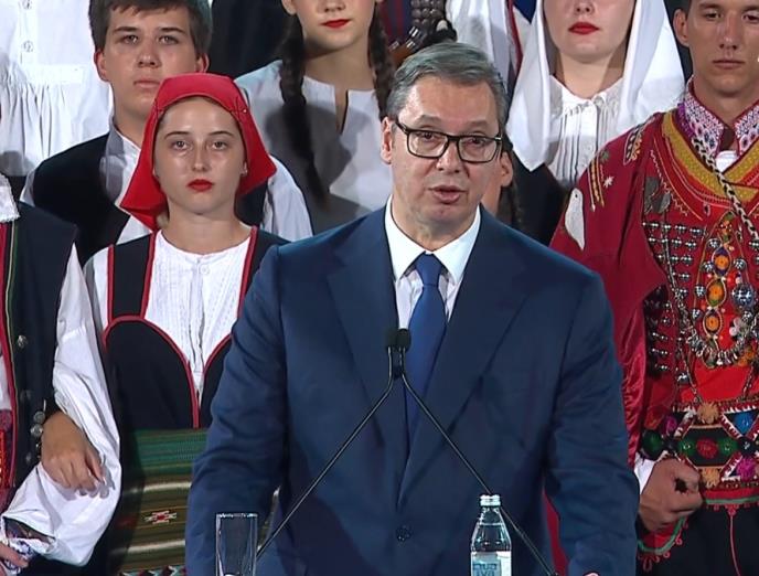 - Danas smo ovde da pokažemo da Srbija više nije šaka zobi i da nema nameru da savija glavu i da im potvrdimo da zabranjeni grad "Jasenovac" i "Oluja", nisu mit, već činjenice sa kojima živimo - istakao je predsednik Vučić.