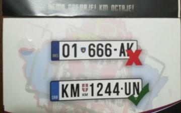 Takođe je na vetrobransko staklo auotomobila zakačen plakat na kome su crvenim "iks" znakom precrtane registarske oznake RKS, kao neispravne, a KM tablice po srpskom sistemu štiklirane zelenom bojom.