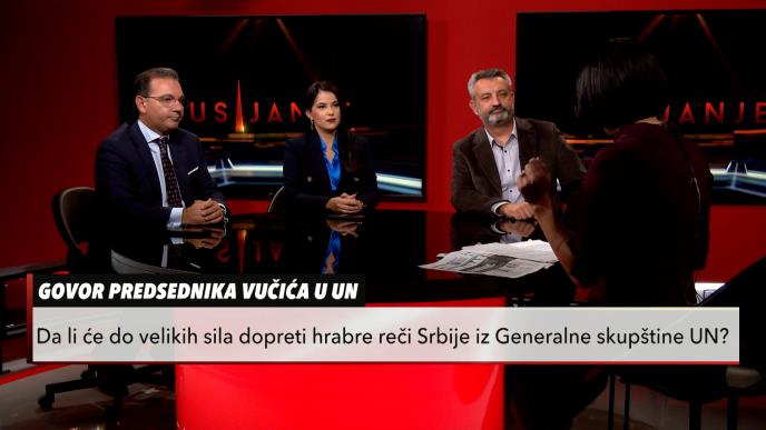 O tome su sa urednicom i voditeljkom Usijanja Silvijom Slamnig razgovarali Vladimir Marinković, narodni poslanik i osnivač Kongresa srpsko-američkog prijateljstva, Biljana Šahrimanjan Obradović iz Centra za stratešku analizu i Ivan Miletić, programski direktor Instituta za javnu diplomatiju.