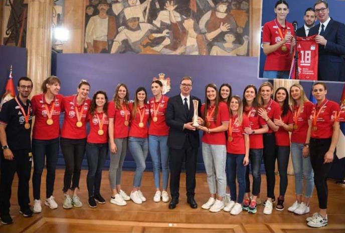 BEOGRAD - Predsednik Srbije Aleksandar Vučić organizovao je jutros prijem u Predsedništvu za zlatne odbojkašice Srbije, prvakinje sveta.