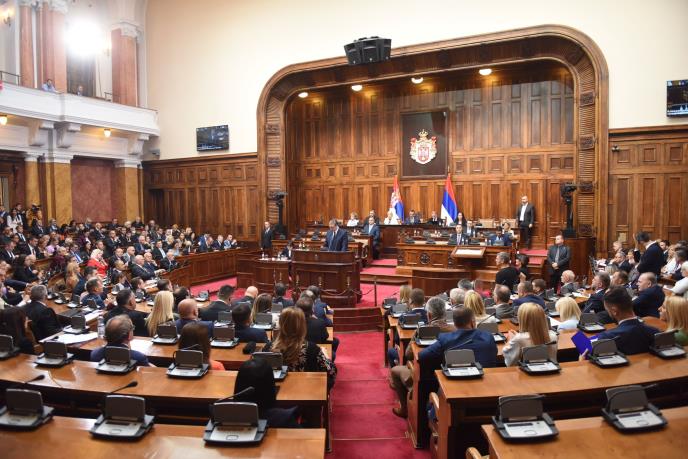 BEOGRAD - Poslanici Skupštine Srbije započeli su, uz intoniranje himne "Bože pravde", prvu sednicu redovnog jesenjeg zasedanja na kojoj će razmatrati izmene i dopune Zakona o ministarstvima, kao uvod u formiranje nove Vlade Srbije.
