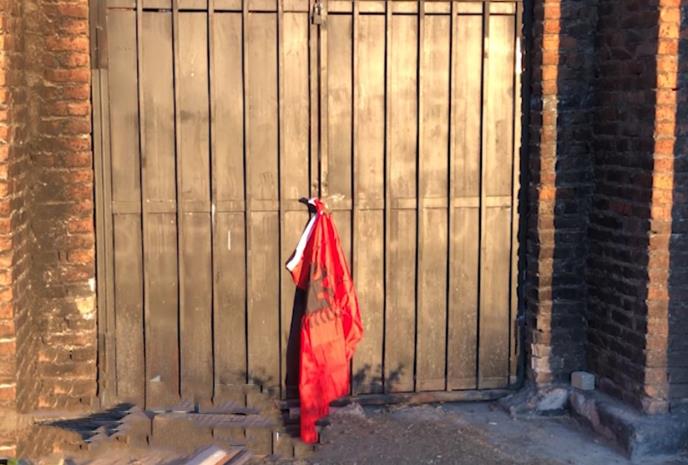 Na vratima Hrama Hrista Spasa u Prištini okačena je zastava Albanije.