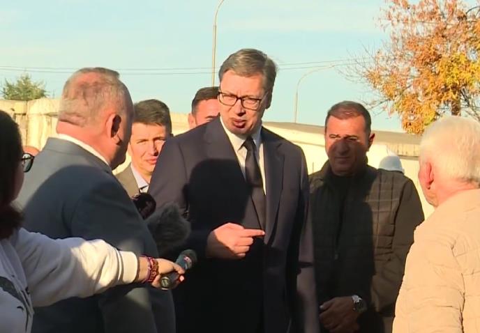 Predsednik Srbije Aleksandar Vučić obilazi radove na izgradnji novog fudbalskog stadiona u Leskovcu.