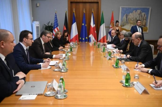 Predsednik Srbije Aleksandar Vučić sastao se juče, na njihov zahtev, sa ambasadorima zemalja Kvinte (SAD, Velika Britanija, Italija, Nemačka, Francuska) i šefom Delegacije EU u Srbiji, koji su mu predali zajednički dokument u kom „izražavaju zabrinutost zbog mogućeg narušavanja stabilnosti u regionu“, a sve to uoči isticanja roka za preregistraciju vozila sa srpskim tablicama na Kosovu, navodi se u saopštenju iz Vučićevog kabineta.