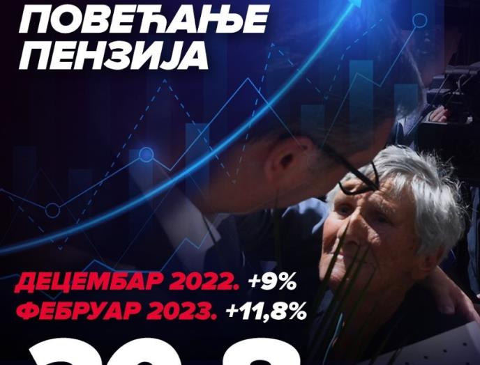 Penzije će u decembru ove godine biti povećane za devet odsto, dok će u februaru 2023. biti uvećene za dodatnih 11,8 odsto, što čini ukupno povećanje od 20,8 odsto.
