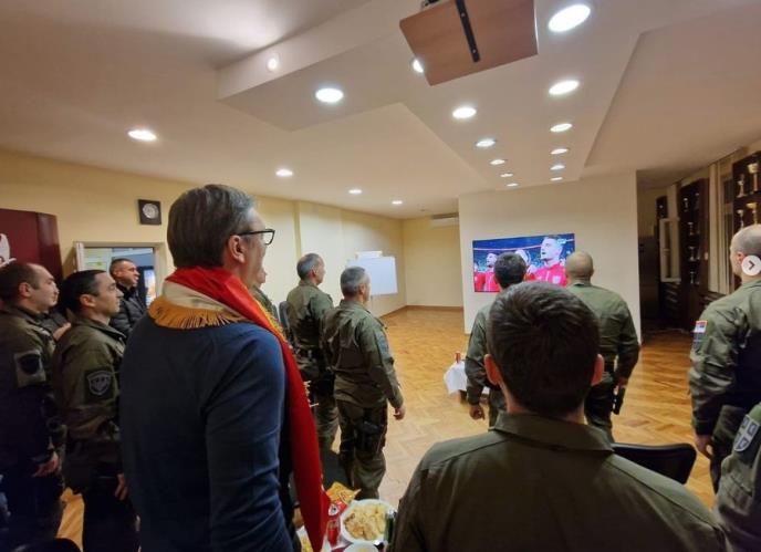 Predsednik Srbije Aleksandar Vučić prati meč Svetskog prvenstva u Kataru između Srbije i Brazila.
