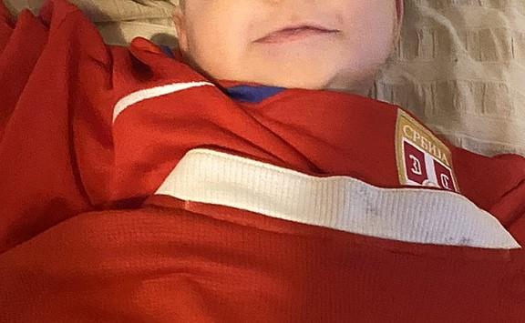 Kako to pravila Svetskog prvenstva "nalažu", u krevecu ju je pokrio dresom, svojim iz mladosti, sa ispisanim prezimenom da se zna za koji tim njegova mezimica igra.