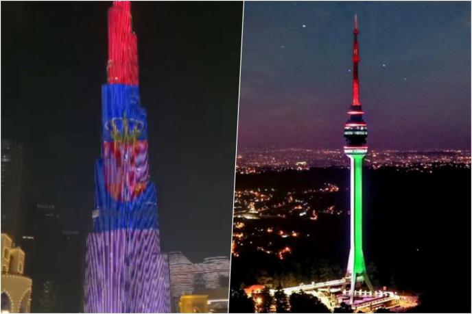 Beogradski toranj na Avali je tim povodom veceras u bojama Emirata, Burdž Kalifa će večeras u 19,45 zasijati u bojama srpske zastave, u znak podrške srpskoj fudbalskoj reperezentaciji koja večeras igra utakmicu protiv Švajcarske, na Svetskom prvenstvu u Kataru.