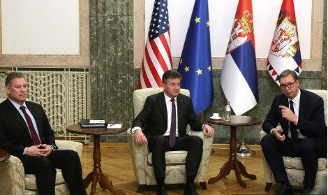 Iskren i korektan razgovor sa specijalnim predstavnikom EU Miroslavom Lajčakom i izaslanikom SAD Gabrijelom Eskobarom, napisao je predsednik Srbije Aleksandar Vučić na Instagramu, posle trilateralnog sastanka u Predsedništvu.