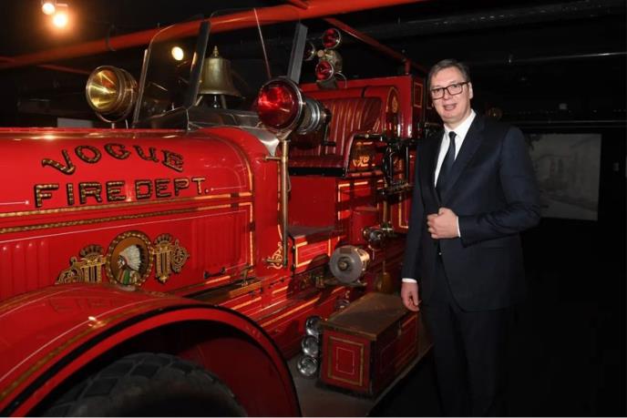 U delegaciji sa predsednikom Vučićem su ministar finansija Siniša Mali i ministar za energetiku i rudarstvo Dubravka Đedović.