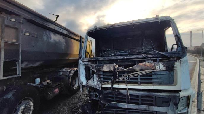 Kabine dva kamiona kojima je bio blokiran ulaz u Severnu Mitrovicu iz pravca Dudinog Krša noćas su izgorele.