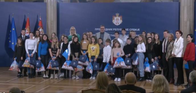 BEOGRAD - Predsednik Srbije Aleksandar Vučić, primio je danas, na Badnji dan, decu srpske nacionalnosti iz Republike Slovenije, koja borave u poseti Beogradu povodom božićnih praznika.