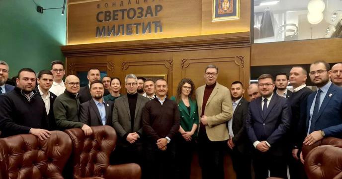 "Ponosan što sam imao priliku da upoznam izuzetno obrazovane ljude i prave srpske rodoljube iz Fondacije Svetozar Miletić i Centra za društvenu stabilnost iz Novog Sada. Razgovarao sam sa njima o aktuelnoj geopolitičkoj situaciji, mnogo toga naučio i zamolio ih da svojim znanjem pomognu jedinoj državi koju imaju i koju beskrajno vole - Srbiji", objavio je predsednik na Instagramu.