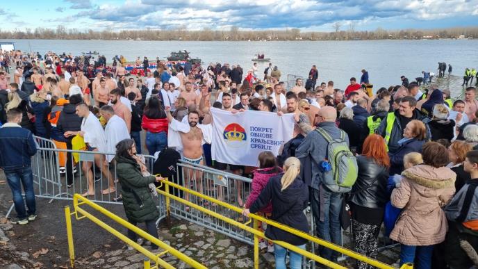 Članovi Pokreta obnove Kraljevine Srbije (POKS), među kojima su bili i visoki funkcioneri Izvršnog i Glavnog odbora stanke plivali su danas na Bogojavljenje za Časni krst u Zemunu.