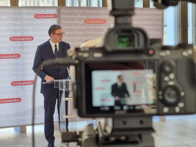 "Veliko vam hvala za ovaj danas divni dan, u ne lakom periodu za našu zemlju. I Bog i priroda bili su posebno darežljivi prema ovom delu Srbije. Kuršumlijska banja imala je slavnu prošlost, i sada je jasno - imaće i slavnu budućnost. Iako smo pričali o tome da Kuršumlijska banja bude obnovljena, da čuveni 'Žubor' bude obnovljen i da, danas se zove 'Planinka', da se uradi nešto veliko za ceo kraj, za Kuršumlijsku banju, za Kuršumliju, trebalo je mnogo vremena. I ponosan sam na činjenicu što smo poznavali ljude koji su uložili taj trud i energiju, koji vole banjski posao, koji vole da rade. To su velike novine, velike stvari za našu Srbiju, za čitavu Toplicu. Velike promene za našu Toplicu i nastavićemo da ulažemo i da pomažemo", poručio je Vučić i dodao: